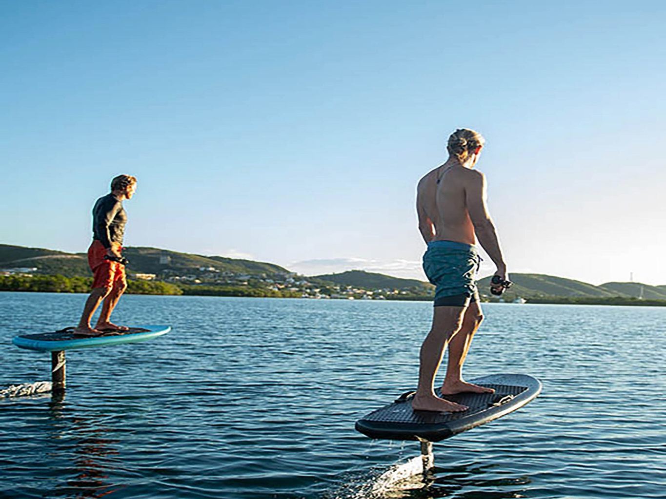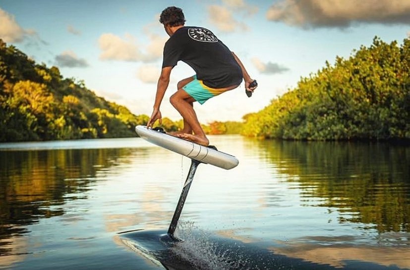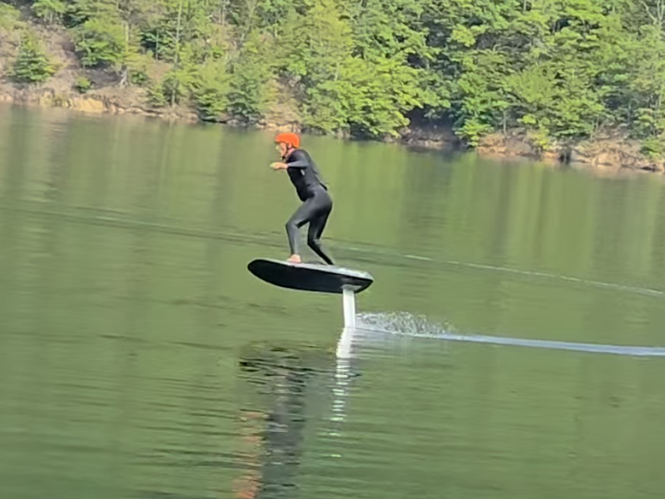 Un eFoil, sau hydrofoil electric, este un tip de placă de surf cu un motor electric atașat sub apă. Motorul acționează o elice care propulsează placa înainte, iar o aripă subacvatică (hydrofoil) o ridică deasupra apei la viteze mai mari, dând senzația de “zbor”. Este controlat cu o telecomandă wireless de către cel care îl folosește, permițând navigarea silențioasă și lină, fără a fi nevoie de valuri.